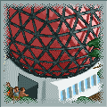 Construction: Gondola is a suspended by large rotating arms at each side. The supporting arms can both move the gondola and rotate it upside down in a preset sequence.