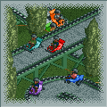 Construction: Three pairs of seats rotate at the end of three rotating arms.